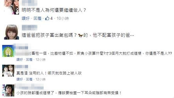 網友說道:“小孩才3個多月大,竟然因為孩子哭鬧而打小孩?如那天被打死了怎么辦?這么小的小孩怎么能受的了28歲大人的力道!?”驗傷時醫院已經通報社會局報警處理。