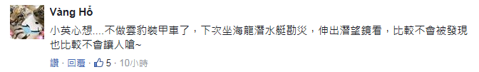 因南臺灣暴雨導致多地區淹水,蔡英文昨(25)日前往嘉義勘災,到達布袋鎮永安里時,當地村民原以為她是來體察民情,卻沒想到蔡竟然搭乘云豹裝甲車試圖駛入災區,期間還向受災民眾揮手致意,滿臉堆笑。