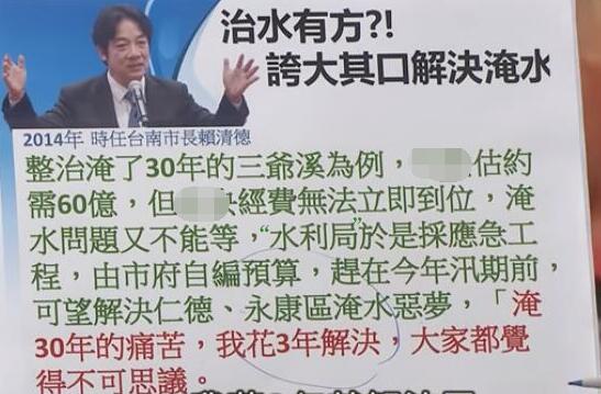 被指任臺(tái)南市長時(shí)“治水失敗”的賴清德更狂,面對(duì)批評(píng)聲竟說“批評(píng)的人可以講出來,讓他當(dāng)上帝,選擇這些雨量下在哪些地方,把握不會(huì)淹水?”