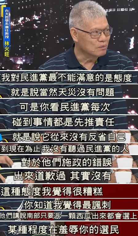 臺(tái)大教授林火旺為此直言,民進(jìn)黨執(zhí)政后最讓人不滿意的就是態(tài)度,“碰到事情都是先推責(zé)任”。
