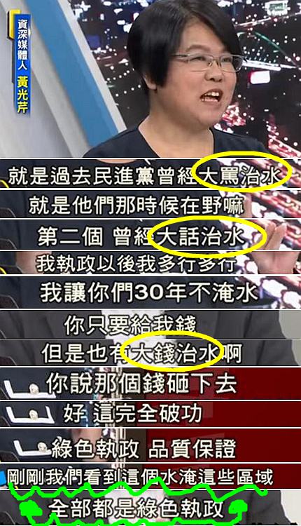 資深媒體人黃光芹更諷刺民進(jìn)黨“治水”有“三大”,而這次淹水的區(qū)域更讓大家堅(jiān)定,綠色執(zhí)政果然就是“品質(zhì)保證”!