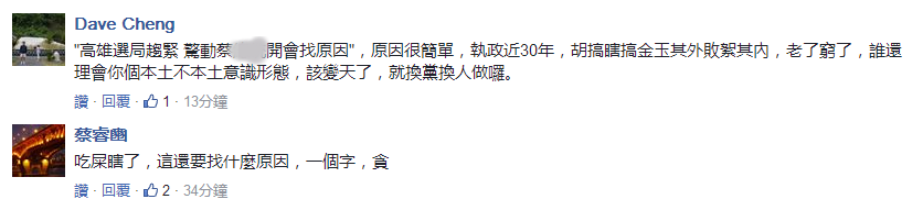 這個說法,顯然是把蔡英文也拉下了水,縣市選舉這么難,還不是因為你執政無能嗎?臺灣網友也在評論區說出了陳其邁的心里話。