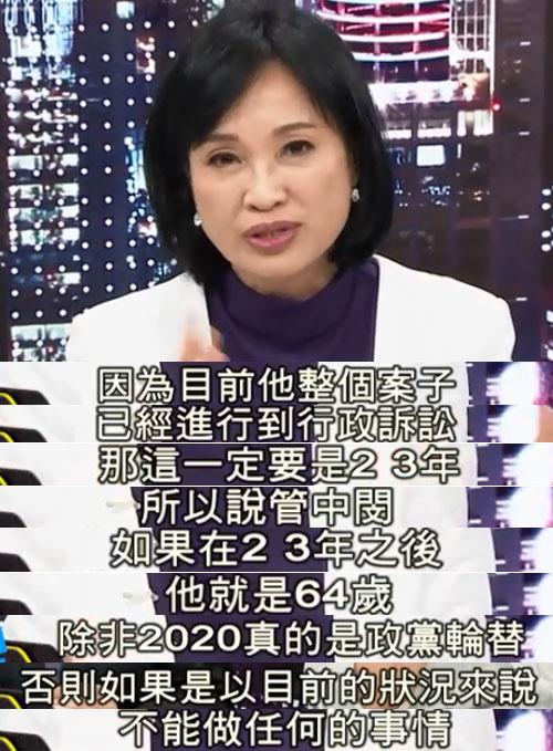 對(duì)于管中閔的言論,國(guó)民黨“立委”柯志恩也表示非常理解,畢竟案件進(jìn)行到行政訴訟的階段,耗費(fèi)的時(shí)間至少在兩三年,“除非2020年真的政黨輪替,否則以目前的情況而言,管中閔將長(zhǎng)時(shí)間處于‘下崗’階段!