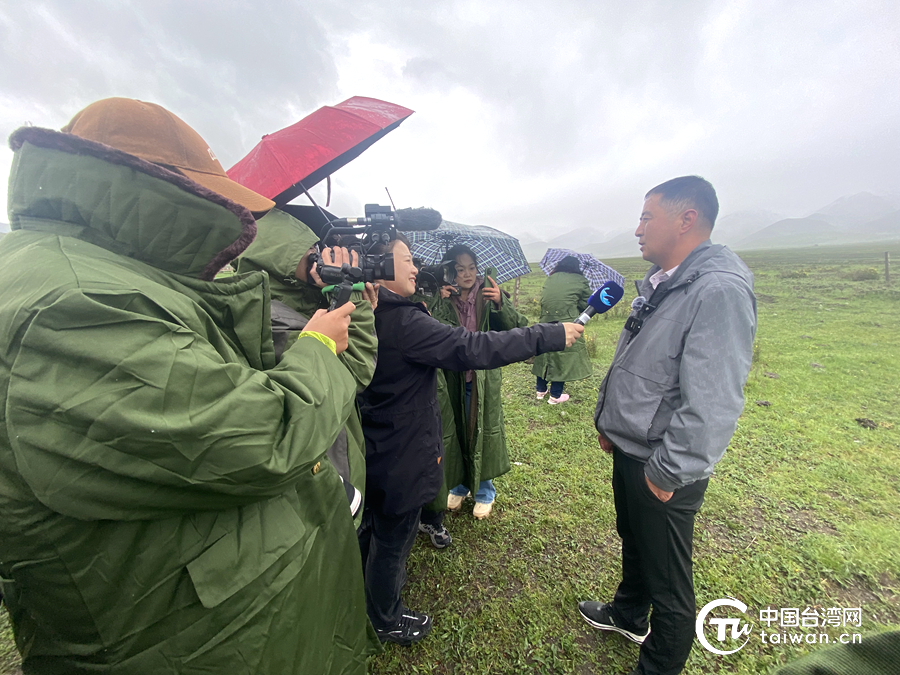 6月19日至23日,“說如意甘肅——海峽兩岸媒體人走進白牦牛故鄉”主題活動在甘肅舉辦。圖為記者們在天祝縣抓喜秀龍草原上采訪牧民。(中國臺灣網記者 李寧 攝)