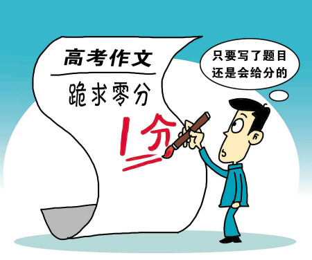 通篇空白,只在標題上寫了四個字“跪求零分”,得一分;試卷當成了畫稿,寫下題目之后,畫了一個類似于QQ表情的哭臉,通篇再無一字,得兩分!這些看似奇葩的作文,都是出自今年江蘇高考生之手,讓閱卷老師相當無奈。很多人不解,高考中在密集分數段,一分就相差兩三千人,考生們恨不得“分分計較”,怎么還會有考生“跪求零分”呢? (6月23日《現代快報》)