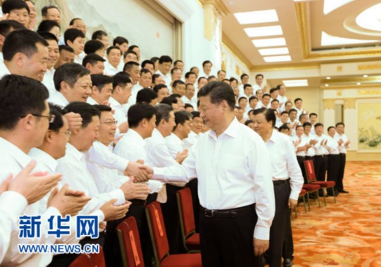 2015年6月30日,黨和國家領導人習近平、劉云山等在北京人民大會堂會見全國優秀縣委書記。 新華社記者 蘭紅光 攝
