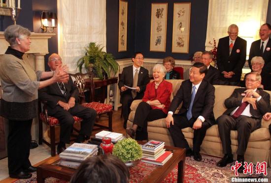 當地時間2月15日,中國國家副主席習近平到訪艾奧瓦州馬斯克廷市,并于27年前第一次訪問此地時結識的老朋友舉行茶敘。圖為習近平與老朋友敘舊場景。中新社發
