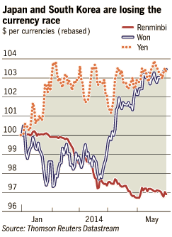 但是,中國央行減少干預意味著人民幣匯率上升壓力減弱。據巴克萊推算,今年4月流出中國的資本超過80億美元,此前6個月,流入中國的資本約為1400億美元。出口商看來可能終于領會到央行發出的信息。