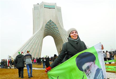 2月10日,在伊朗首都德黑蘭,一名女子參加集會活動。當日,伊朗數十萬民眾走上街頭舉行全國范圍集會,紀念伊朗伊斯蘭革命勝利38周年并抗議美國對伊實施新制裁。新華社/法新(資料照片)