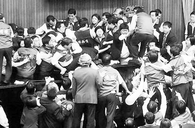 臺灣“立法院”藍綠“立委”經常上演全武行