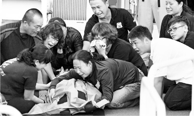 家屬看到洪石成遺體失聲痛哭。