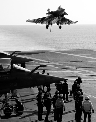 從利比亞上空返航的“陣風”艦載機仍掛著炸彈。