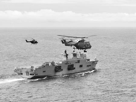 搭載有攻擊直升機的英國海軍“海洋”號兩棲攻擊艦