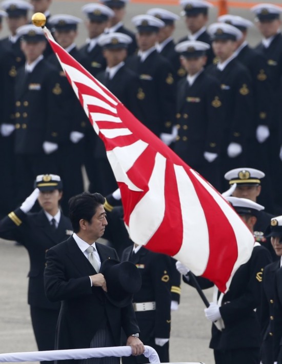 當地時間2014年10月26日,日本東京,日本首相安倍晉三在茨城縣小美玉市的航空自衛隊百里基地出席了自衛隊成立60周年航空閱兵式。