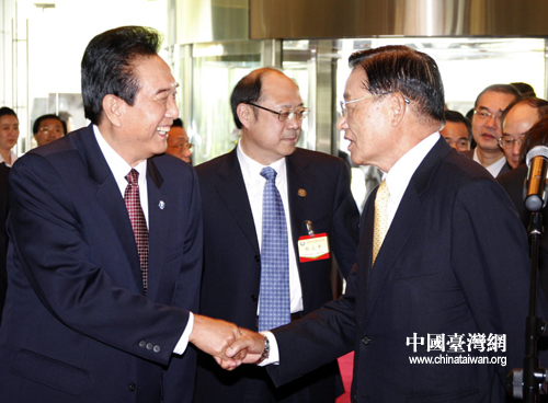 4月25日,海協會會長陳云林在南京紫金山莊歡迎海基會董事長江丙坤一行(鐘寶華 攝)