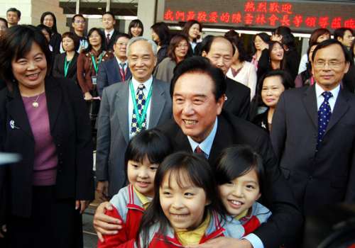 11月27日,海協會會長陳云林來到東莞,調研當前臺資企業生產經營情況。陳云林表示,相關部門對臺商的呼聲非常重視,呼吁臺商樹立信心,積極應對國際金融危機帶來的困難。圖為陳云林在東莞參觀臺商子弟小學。(中新網)