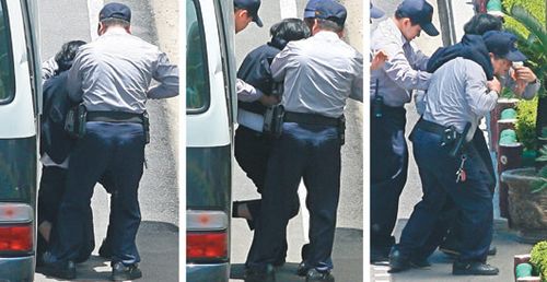 陳水扁7日返回看守所時差點跌倒,在三名法警的攙扶下進入戒護中心。