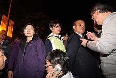 當學生團體失控攻占行政院時,警方在勸阻無效必須強制驅離時,又見民進黨的前后任主席赴現場。(圖片來自臺媒)