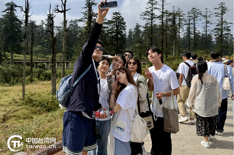 兩岸青年學子在眉山之行中建立起深厚友誼,于瓦屋山登頂后合影留念。(中國臺灣網(wǎng)記者 郁誠 攝)