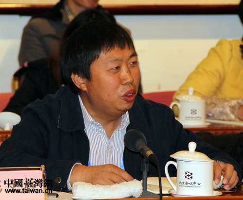 北京聯(lián)合大學(xué)臺(tái)灣研究院院長(zhǎng)助理、臺(tái)灣政黨政治研究所所長(zhǎng)李振廣在研討會(huì)上發(fā)言。(中國(guó)臺(tái)灣網(wǎng) 李杰 攝)