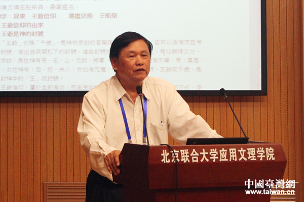 臺灣臺中科技大學(xué)應(yīng)用中文系教授蕭登福圍繞“臺灣屏東地區(qū)的民間宗教信仰”進行主題發(fā)言。(中國臺灣網(wǎng) 張潔 攝)