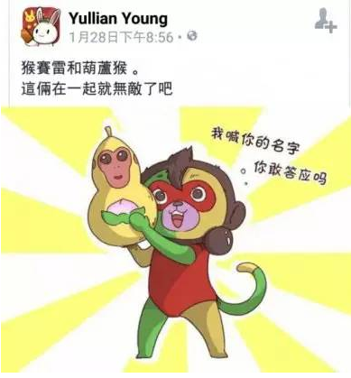 即將到來的農歷2016年,是中國人傳統的“猴年”,央視春晚的吉祥物與臺北市政府公布的燈會主燈,當然都以今年的生肖“猴子”為主題。“康康”和“福祿猴”一樣,都出自名家之手。“康康”出自國家一級美術師韓美林的手筆,“福祿猴”則由臺灣多媒體藝術大師林書民操刀。而它們受到的爭議,竟然也是如此相像。有臺灣網民直言:當初看到“康康”時還諷刺人家“敢再丑點么”,此刻看到我們的燈,由衷想回答“敢,有什么好不敢的,敢極了”!還有一位網友恰到好處地通過那句經典的“我叫你一聲,你敢答應嗎?”,把“康康”與“福祿猴”這對跨海的“冤家”巧妙地結合到了一起,令看到之人忍不住笑出聲來。