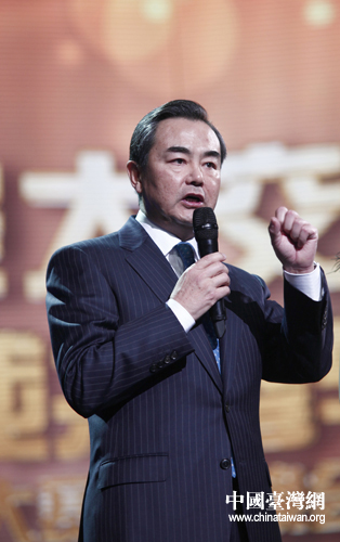 “兩岸大交流 你我共參與”網絡作品大賽13日在北京舉行頒獎晚會。圖為中臺辦、國臺辦主任王毅在晚會上致辭。(中國臺灣網 田云鵬 攝)