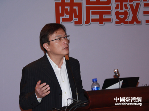昱泉國際營運長凌明源在兩岸數字內容及產業孵化論壇上作主題演講(中國臺灣網 高斯斯 攝)