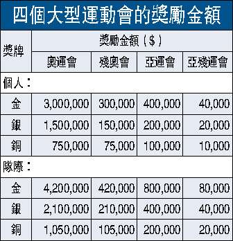 四個(gè)大型運(yùn)動(dòng)會(huì)的獎(jiǎng)勵(lì)金額。圖片來(lái)源:文匯報(bào)