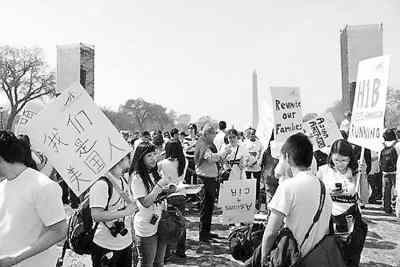 3月21日,大約10萬民眾在華盛頓國家廣場舉行集會和游行,呼吁奧巴馬政府盡快啟動移民改革。來自華盛頓、紐約、芝加哥、亞特蘭大等地的上千名華人參與了集會。