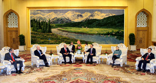溫家寶指出,中美經(jīng)貿(mào)合作在快速發(fā)展過程中,出現(xiàn)了一些分歧和摩擦,但這與兩國經(jīng)貿(mào)合作給雙方帶來的巨大利益相比是支流。雙方應(yīng)著眼大局和長遠(yuǎn),堅持通過對話和協(xié)商,以建設(shè)性的方式,按照經(jīng)濟規(guī)律妥善解決。