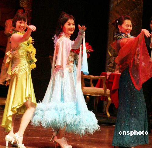 一月三日晚,大陸知名影視演員劉曉慶(中)在臺北國父紀(jì)念館彩排舞臺劇《金大班的最后一夜》,由她領(lǐng)銜主演的《金大班的最后一夜》四日起將在臺北公演六場。這是該劇在上海、北京、南京及新加坡等地巡演數(shù)十場并廣受好評后,首次來臺灣演出。 中新社發(fā) 孫自法 攝