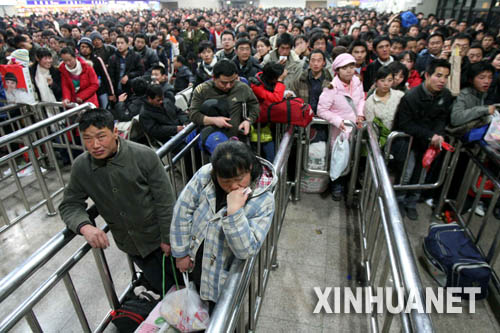 在鐵道部春運辦重點站區實時監控錄像中記者看到,北京西、漢口、西安等站人潮如織。據鐵路部門分析,目前春運鐵路客流暴漲的原因主要有三個方面。