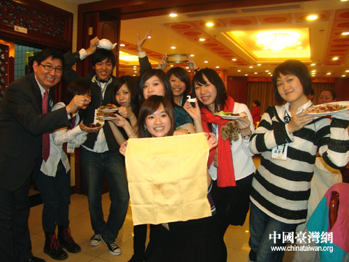 來自臺灣花蓮教育大學的林鈺堂剛剛結束哈爾濱的行程來到北京,第一次踏上大陸這片神奇的土地讓他有種說不出的激動。“北京干燥、寒冷又清新的空氣都讓我們感到欣喜,那種感覺很微妙。聞名不如見面,大陸之行不僅讓我們增長了閱歷,更結交了朋友! 與林鈺堂同校的女孩陳珈蓁對任何事物都感到好奇和驚喜,她興奮地學習卷烤鴨的技巧,拉著記者照相,并與新朋友交換聯系方式,渴望交流與溝通的迫切心情溢于言表。