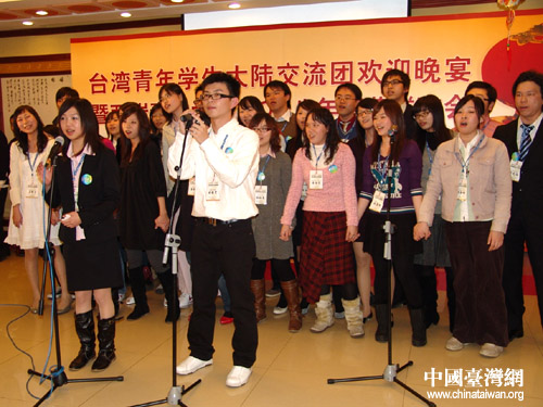 當參加活動的兩岸大學生共同演唱起原創歌曲《我們的心》時,聯歡會達到了高潮。在歡聲雷動的大堂里,兩岸青年用歌聲為大陸與臺灣的所有朋友送上了新春的祝福。