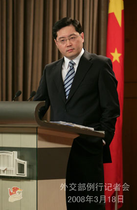 在達賴竄訪其他國家的問題上,秦剛表示,中國政府的態度一向是非常明確、堅決的。達賴不是單純的宗教人士,而是披著宗教外衣、長期在國外從事分裂祖國活動、破壞民族團結的政治流亡者。這次在拉薩發生的暴力事件再次暴露出了達賴集團的分裂實質。任何一個不帶偏見、主持公道的國家和政府對此都會得出正確的結論。我們堅決反對其他國家政府官方人士會見達賴,為達賴分裂言行提供講壇和便利。我們這一立場沒有變化。