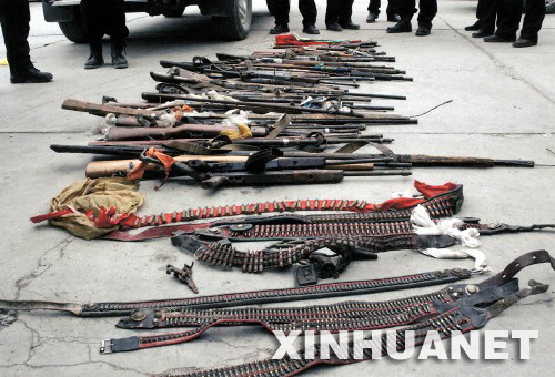 據介紹,3月28日,根據群眾舉報,公安機關在格爾登寺查獲了一批武器彈藥,其中包括小口徑步槍16支、各種火藥槍14支、子彈498發、火藥4公斤、管制刀具33件,查獲了數以千計的“藏獨”宣傳品,以及短信群發器和淫穢錄像光碟等。