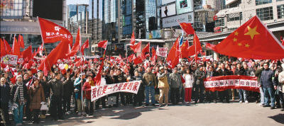 3月29日,加拿大多倫多市中心的Dundas 廣場(chǎng)舉行了“宣傳西藏真相,維護(hù)祖國統(tǒng)一”大型集會(huì),集會(huì)由中國留學(xué)生組織,得到各界華人的廣泛支持。 吳 敏攝