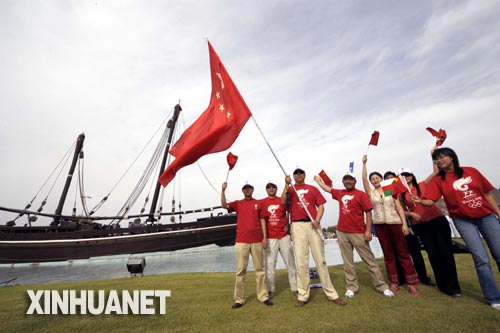 4月14日,華人華僑在奧運圣火傳遞起跑儀式現(xiàn)場等待儀式開始。當日,北京奧運圣火傳遞活動在阿曼馬斯喀特舉行。新華社記者 戚恒 攝