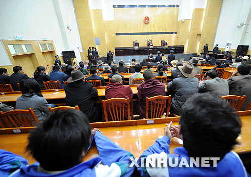 4月29日,西藏自治區(qū)拉薩市中級人民法院舉行宣判大會,對拉薩“3·14”打砸搶燒嚴重暴力事件中的部分犯罪案件,依法進行公開宣判。 新華社記者 覺果 攝