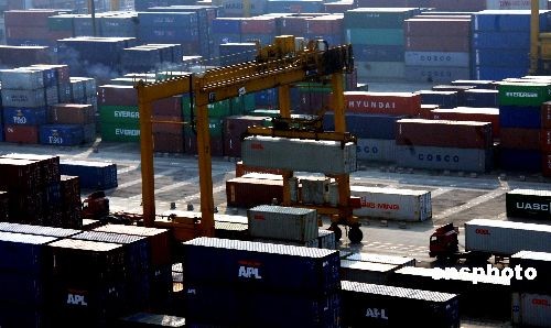 資料圖:3月24日,對臺試點直航口岸重要作業區福州港青州港區集裝箱碼頭呈現繁忙景象。福州港作為原國家交通部批準的兩個對臺試點直航口岸之一,自1997年4月19日福建省外貿船務公司的“華榮”號裝載37個標箱駛向臺灣高雄,首次實現兩岸試點直航以來,截至2008年2月,對臺試點直航船舶已順利往返共計8210個航次,累計運載集裝箱214萬多標箱。 中新社發 劉可耕 攝