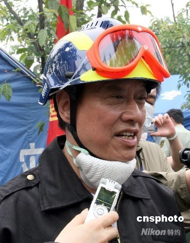 資料圖:來(lái)自臺(tái)灣的紅十字救援隊(duì),十七日進(jìn)入四川綿竹市漢旺鎮(zhèn),展開搜救工作,圖為領(lǐng)隊(duì)歐晉德。 中新社發(fā) 齊彬 攝