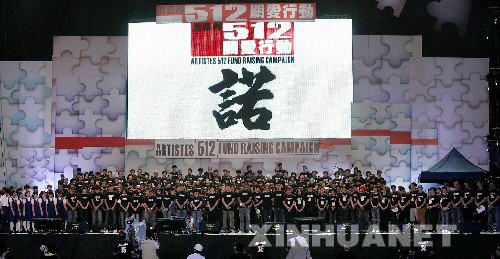 6月1日,香港舉辦“5·12關(guān)愛行動”大型義演,為四川地震災(zāi)區(qū)籌款,來自內(nèi)地和港澳臺的500多名演藝界人士參加賑災(zāi)義演。新華社記者周磊攝