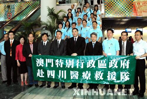 一支由20名志愿者組成的澳門特區(qū)政府醫(yī)療救援隊,5月23日飛抵四川地震災(zāi)區(qū)。醫(yī)療救援隊中的志愿者們分別來自澳門特區(qū)政府衛(wèi)生局和鏡湖醫(yī)院,包括10名醫(yī)生和10名護士。