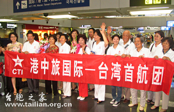 北京市臺聯(lián)副會長葉芳、鄭大等人專門到機場為她們送行。當大家拉開寫有“常回家看看—歡送在京臺胞隨首發(fā)團赴臺旅游”的橫幅合影留念時,立刻引來了眾多在場的記者和游客們的鏡頭和關注。