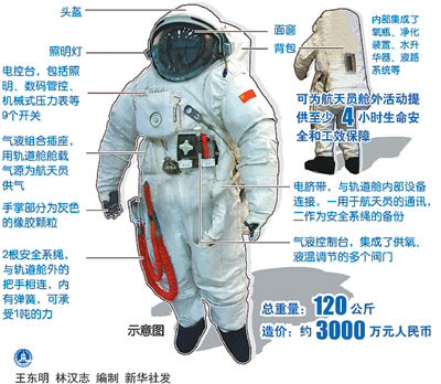 新華網北京9月26日電(記者田兆運、孫彥新)9月26日10時20分,航天員翟志剛和劉伯明開始在神舟七號飛船軌道艙進行軌道艙狀態檢查和艙外航天服的組裝與測試等工作。