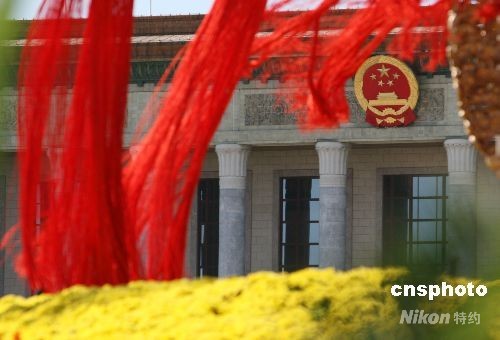 2008年10月8日,天安門(mén)廣場(chǎng)一片喜慶祥和。中國(guó)共產(chǎn)黨第十七屆中央委員會(huì)第三次全體會(huì)議將于10月9日至12日在北京召開(kāi)。 中新社發(fā) 魯谷 攝