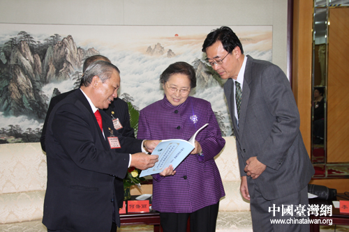 中國臺灣網11月16日北京消息 今天,中國和平統一促進會與來訪的臺灣道教文化團體聯合總會訪問團一行在京舉行座談會,原全國人大常委會副委員長、中國和平統一促進會副會長何魯麗出席座談會并發表講話。座談會由中國和平統一促進會執行副秘書長李路主持。