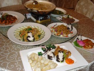 報道稱,“團團”“圓圓”在臺灣過年,臺灣飯店餐廳業者也搶搭大熊貓熱,推出除夕大熊貓團圓年菜,年菜餐點有可愛的大熊貓裝飾。