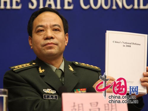 國務院新聞辦公室于1月20日上午10時在京舉行了新聞發(fā)布會,介紹2008年中國的國防白皮書,并回答了記者提問。 圖為國防部新聞發(fā)言人、國防部新聞事務局局長胡昌明大校。中國網(wǎng) 胡迪